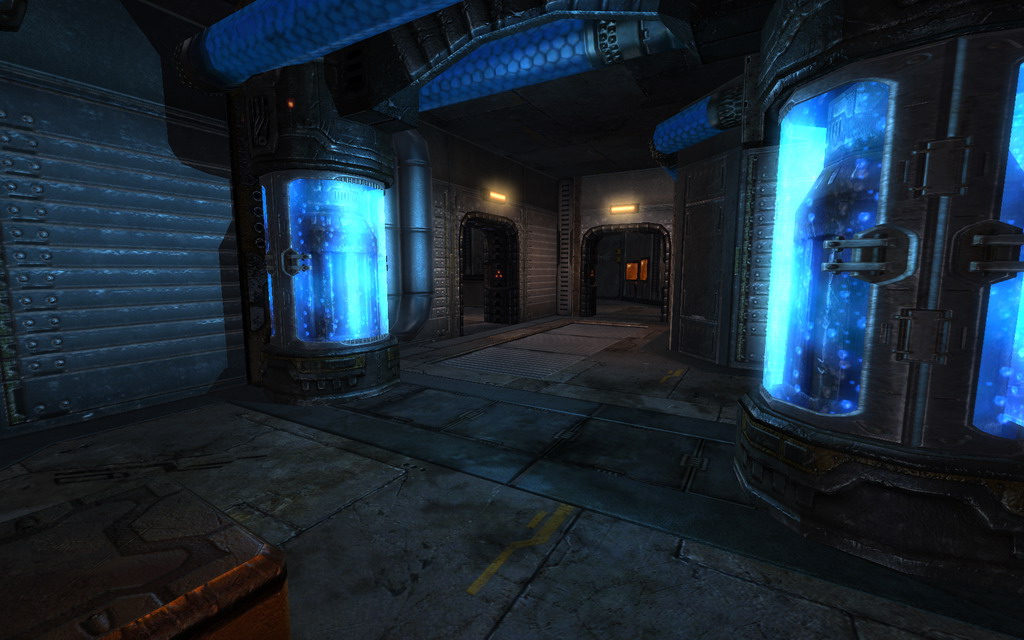 “AREA 22” – The human team (GDF) have captured an alien (Strogg) Slipgate teleporter and are testing it underground at a Nevada test site. The Strogg team must destroy this captured Slipgate before the GDF can uncover its secrets.