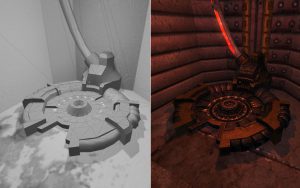 I designed “Slipgate” with a sci-fi twist to give the players two completely contrasting environments within the same level. The battle begins in a scorching hot, sunny environment and then progresses through the teleporter and into the darkness of a raging arctic snow storm.